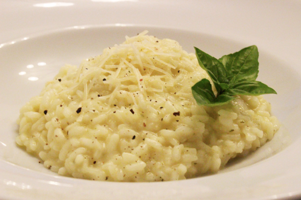 Für das Risotto mit Parmesan wird zu Beginn die Zwiebel geschält und fein gehackt. In einem Topf mit Olivenöl wird die Zwiebel leicht glasig angeschwitzt, anschließend mischt man den Risottoreis unter. Mit dem Weißwein ablöschen und diesen einreduzieren lassen. Dann kann man einen Teil der heißen Brühe hinzu geben, dass der spezielle Reis mit Flüssigkeit bedeckt ist. Sobald diese Suppe aufgesaugt ist, erneut Brühe zugießen, dabei gut umrühren. Tipp: Die Brühe zu einem Teil (100 – 200 ml je nach Belieben) durch Sahne ersetzen, so wird das Risotto mit Parmesan noch cremiger und feiner.