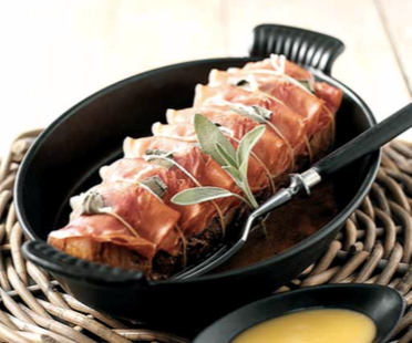 Fingergerecht schneiden, mit frischem Salbei und Rosmarin garnieren .
