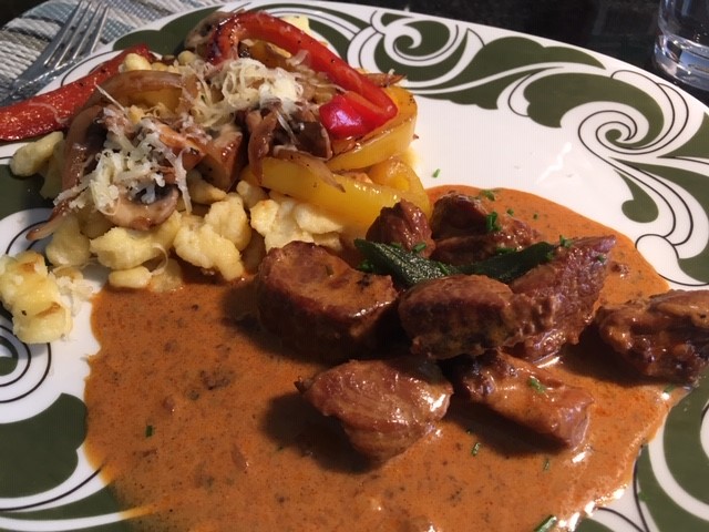 Kalbsvoressen Salvia mit Pilz-Peperoni-Spätzli