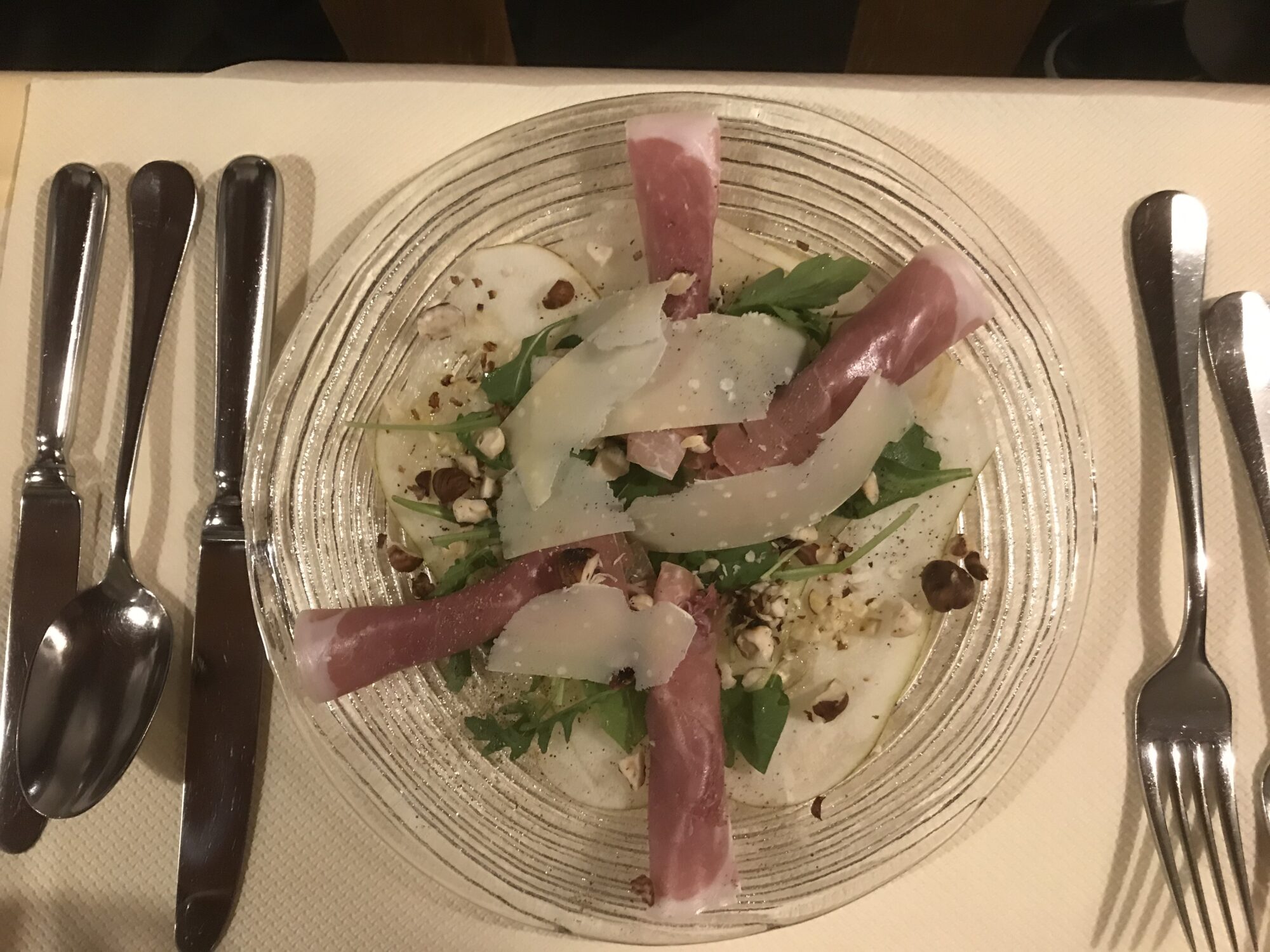 Birnencarpaccio mit Rucola und Rohschinken