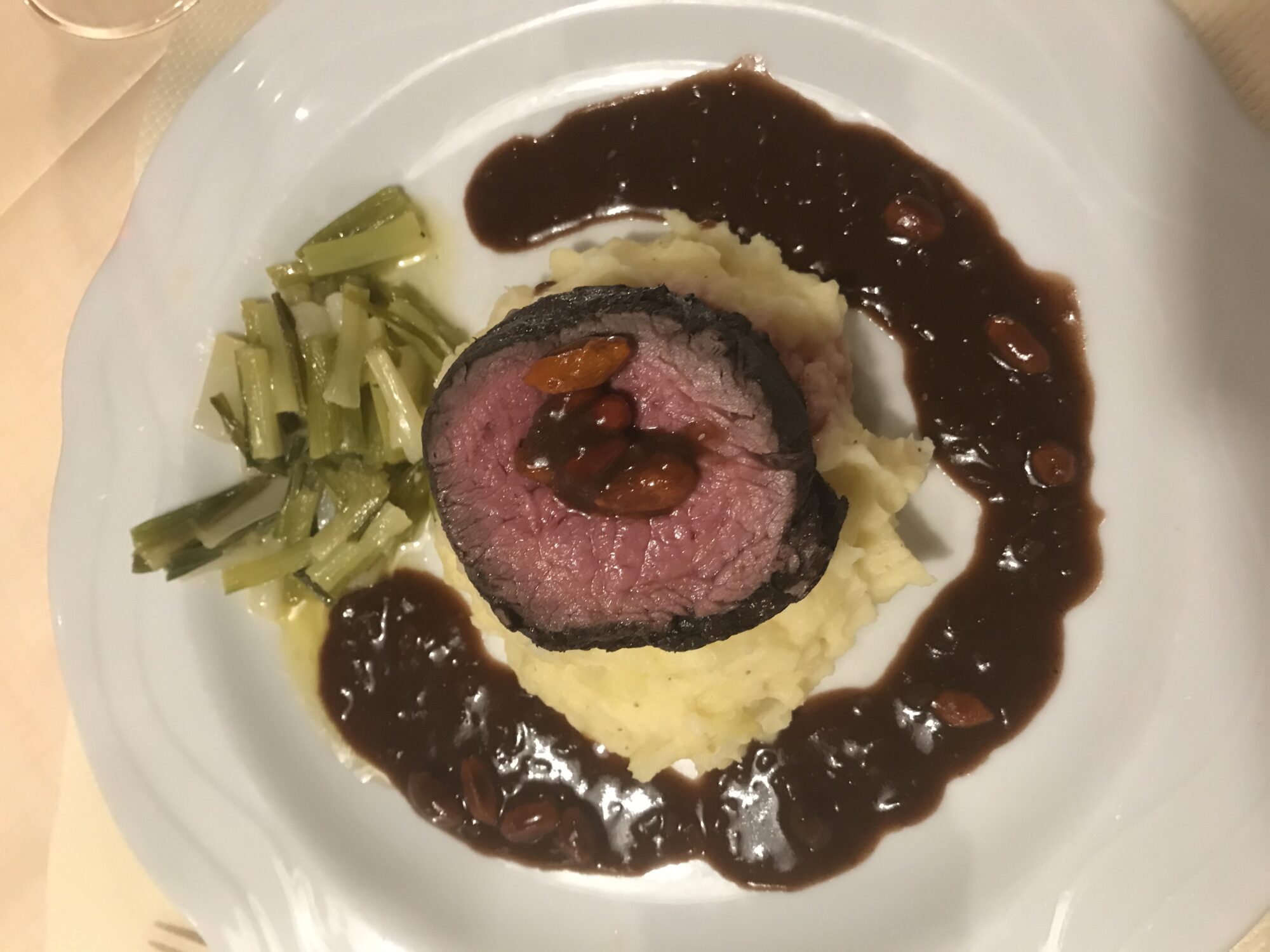 Pochiertes Rindsfilet mit Goji-Beerensauce